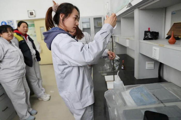 2021年12月初,华腾化工工会针对污水分析特点,组织污水分析岗进行了专业技能大比拼。此次竞赛分别以分析设备监测数据超标,某未知碱性溶液测定浓度作为考核题目,以考核员工在超标事故状态下的应急处置能力,以及在精确滴定、标液配置方面的熟练度和精确度。此次竞赛前大家进行了充分的考前练习,比赛现场冷静应考,现场气氛紧张而有序,最终崔玉静和何柳以优异的成绩荣获第一名。